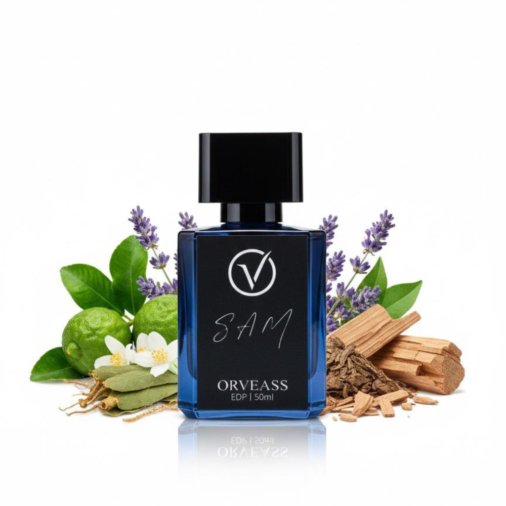 ORVEASS SAM the opening notes of bright citrus and cool marine accords flow into a heart of fresh aromatics, settling into a clean trail of soft woods and subtle musk. The result is a long-lasting, refreshing scent crafted for effortless everyday appeal.